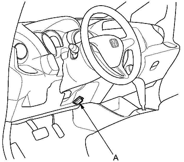 2. Connect the HDS to the data link connector (DLC) (A) located under the driver's side of the dashboard.