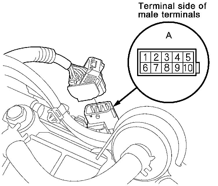 2. Disconnect the transmission range switch harness connector (A).
