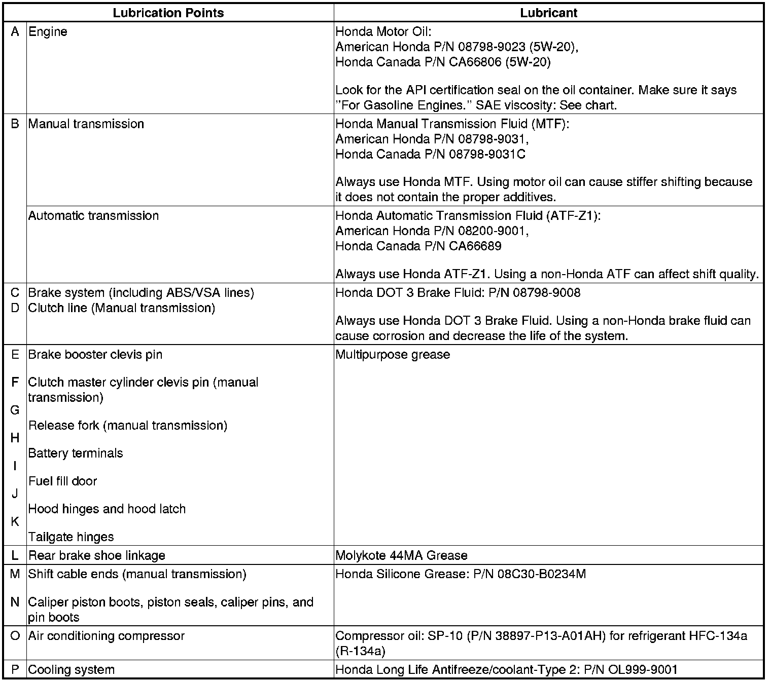 Home >> Honda >> 2010 >> Fit L4-1.5L >> Repair and Diagnosis >> Specifications >> Fluid Type Specifications >> Fluids