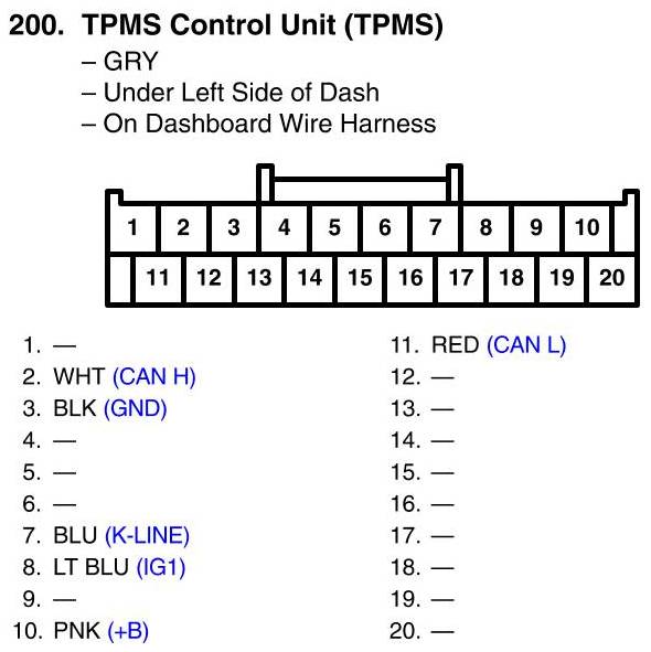 View 200 - TPMS Control Unit Connector View (TPMS)