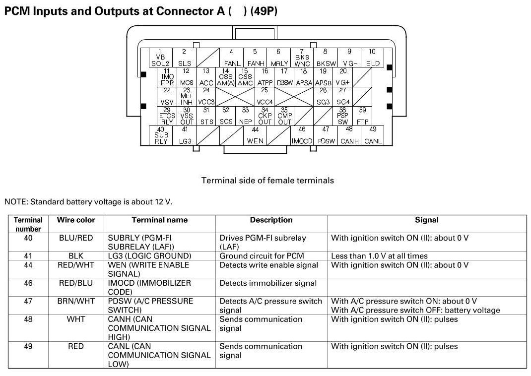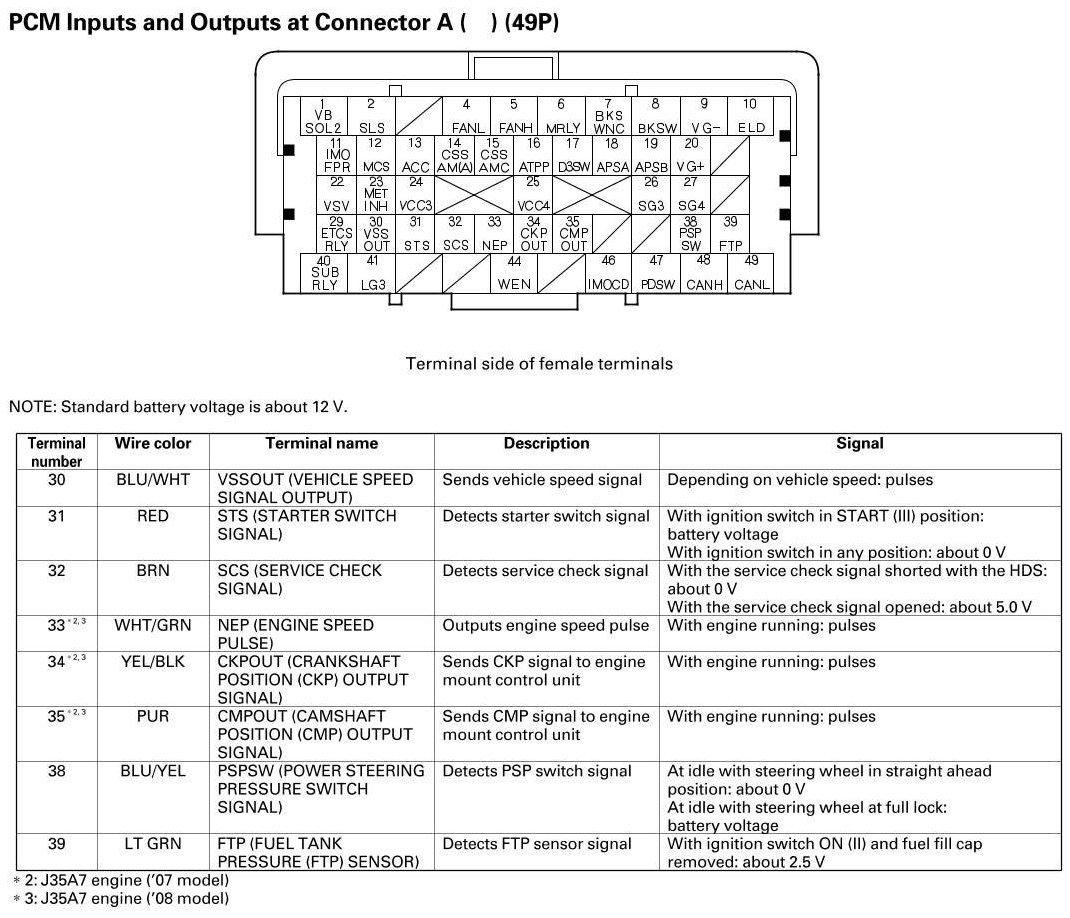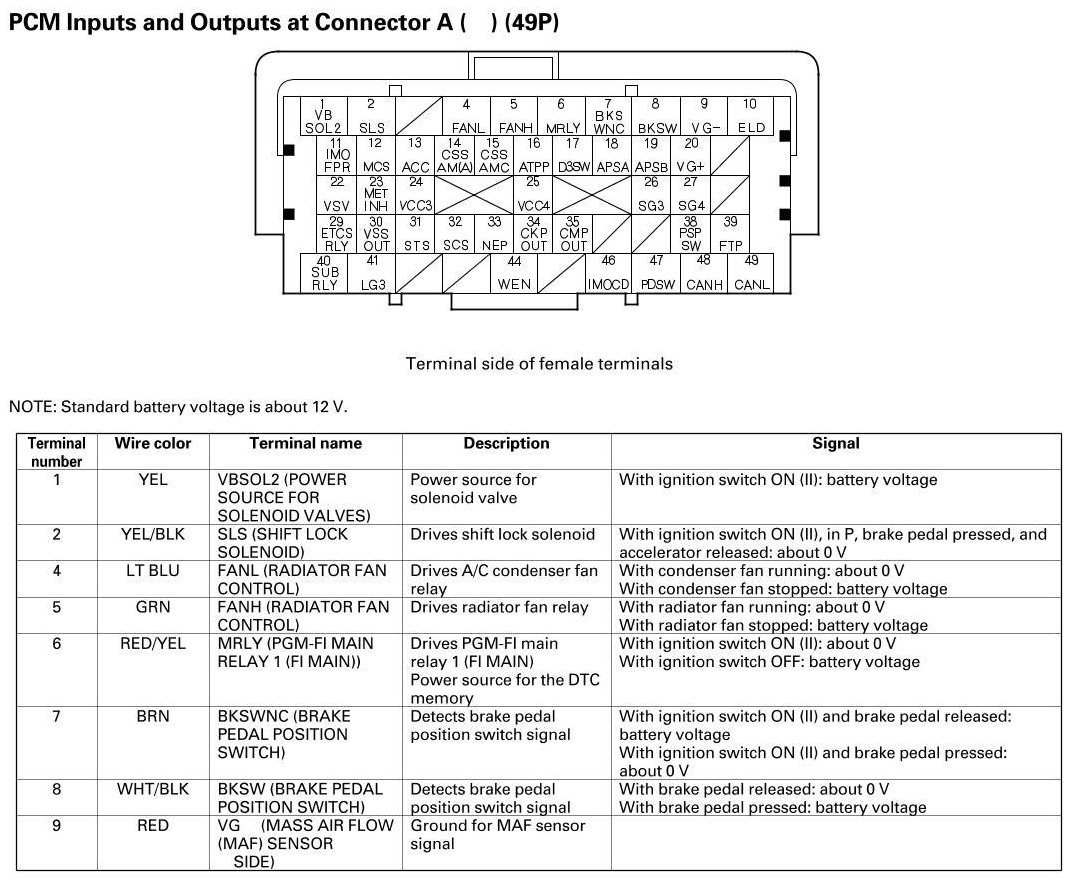 PCM Inputs And Outputs At Connector A