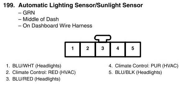 View 199 - Automatic Lighting Sensor/Sunlight Sensor Connector View