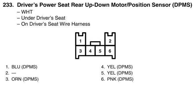 View 233 - Driver's Power Seat Rear Up-Down Motor/Position Sensor Connector View (DPMS)