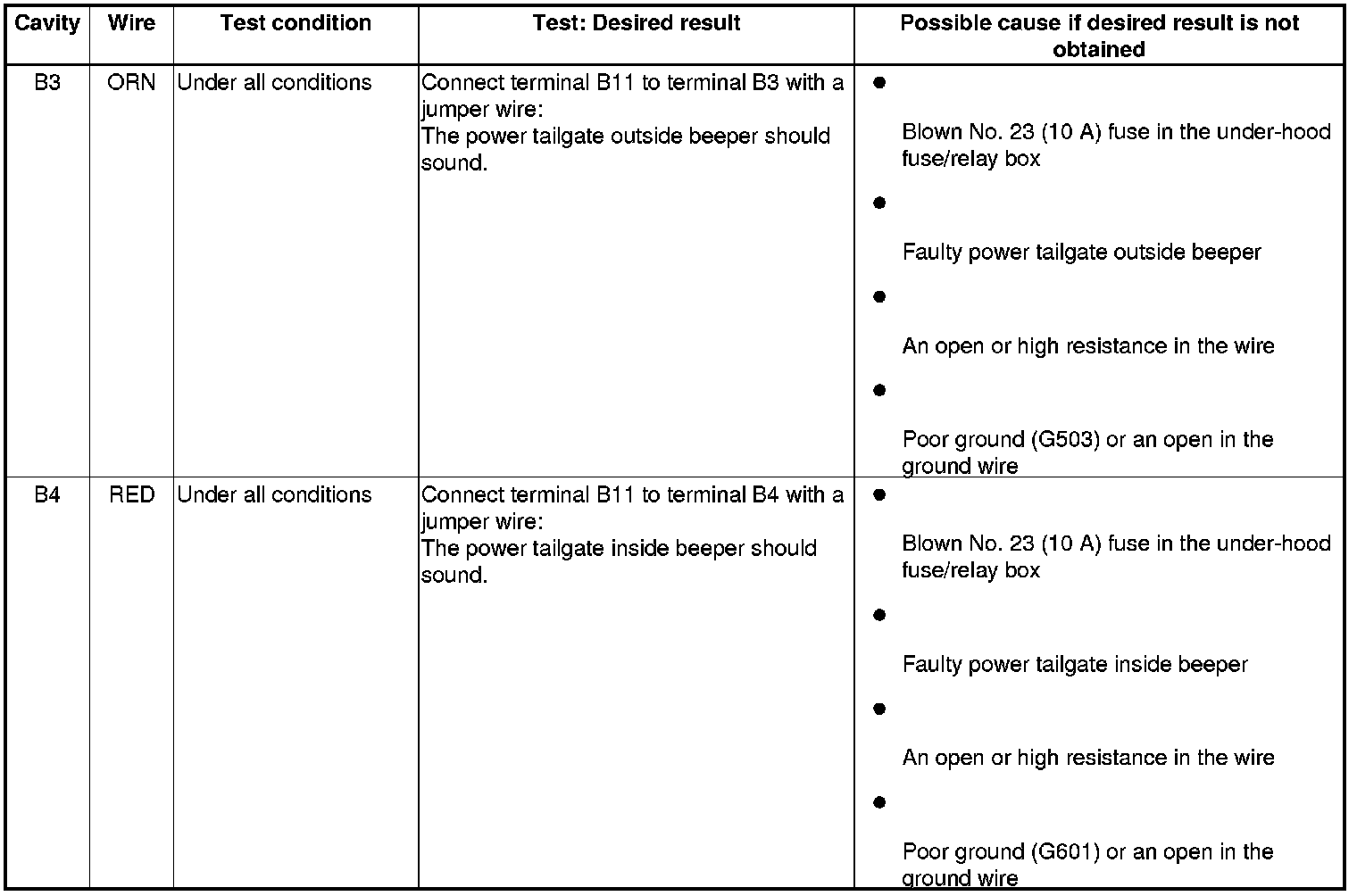 6. Reconnect all connectors to the power tailgate control unit, and do the following input tests.