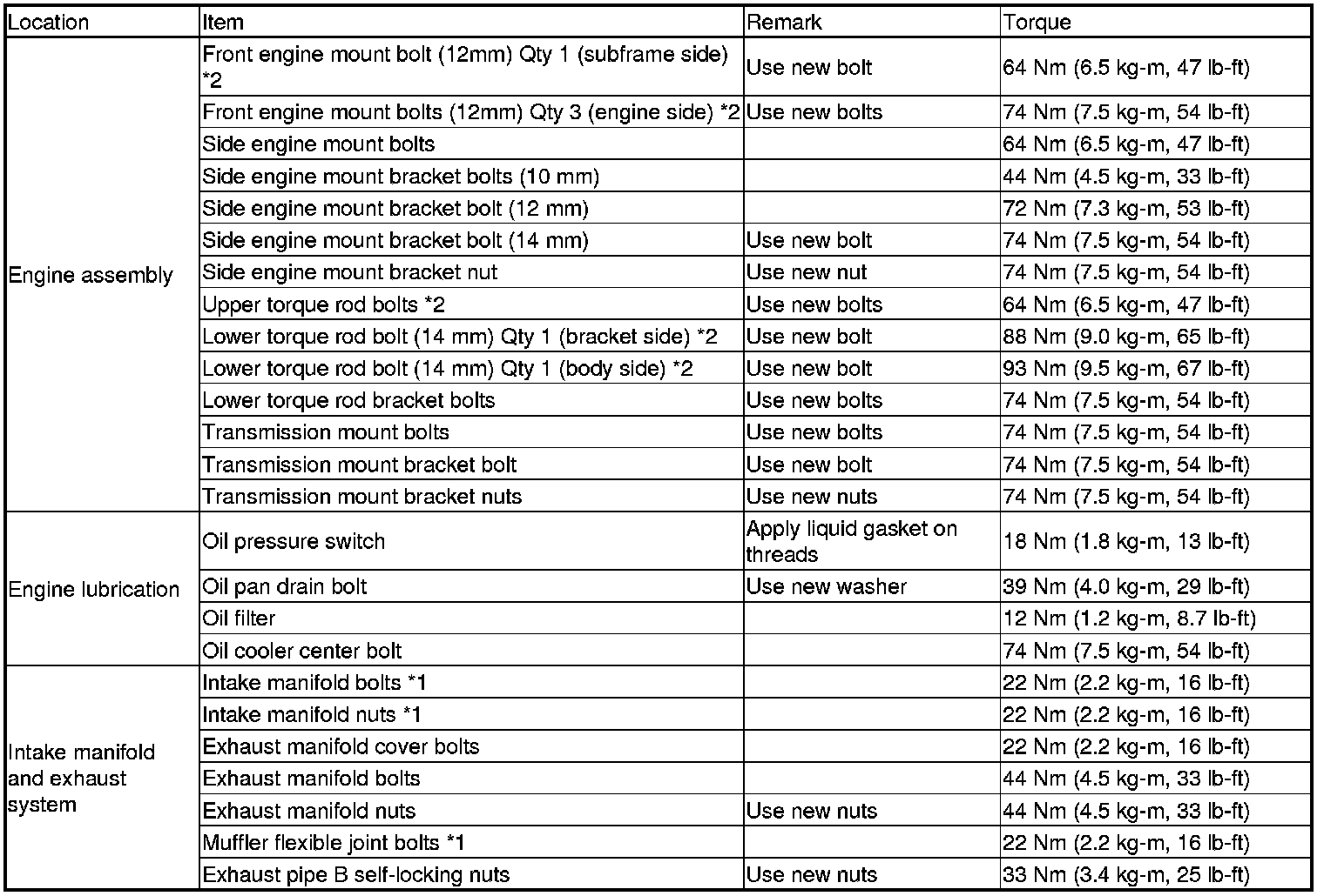 Refer to the service data for the bolts/nuts not indicated here.
