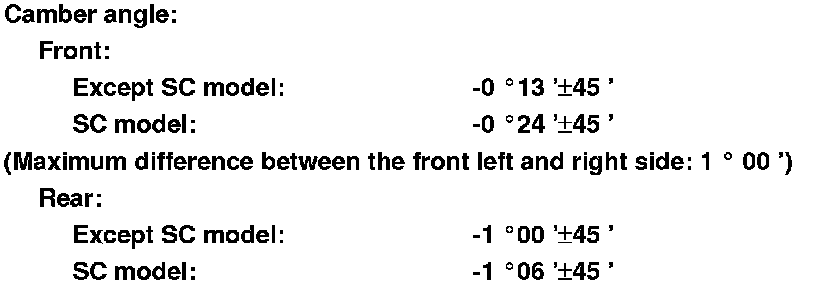 - If the measurement for the front camber is outside the specification, go to front camber adjustment.