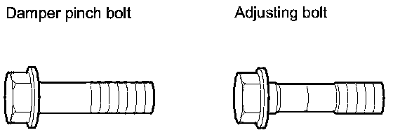 - The camber angle can be adjusted up to ±20 ' (center of tolerance) by replacing one damper pinch bolt with the adjusting bolt.
