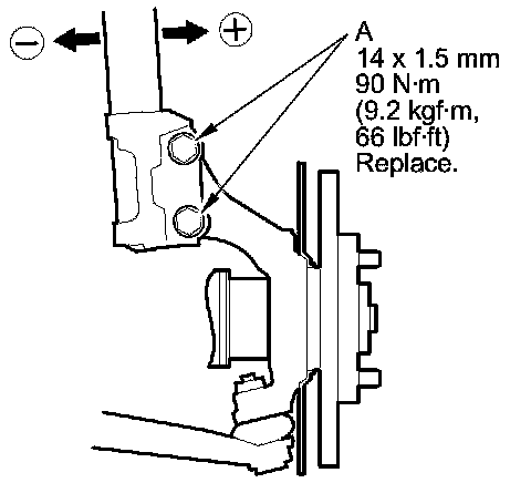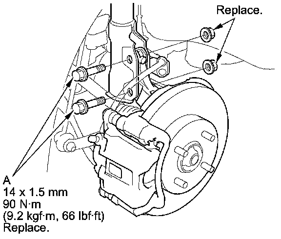 10. Replace the damper pinch bolts with the adjusting bolts (A), and adjust the camber angle.