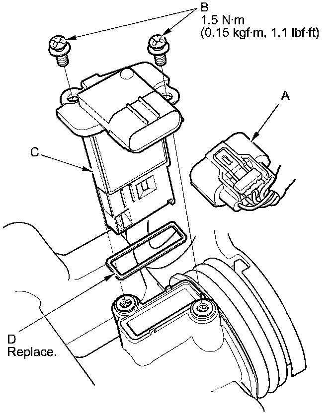 4. Install the parts in the reverse order of removal with a new gasket (D).