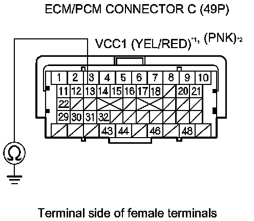 57. Disconnect ECM/PCM connectors A (49P) and C (49P).