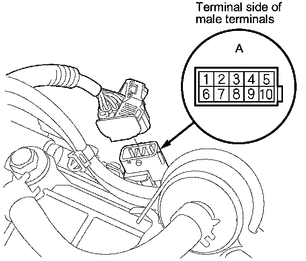 3. Check for continuity between terminals at the harness connector. There should be continuity between the terminals in the following table for each switch position.