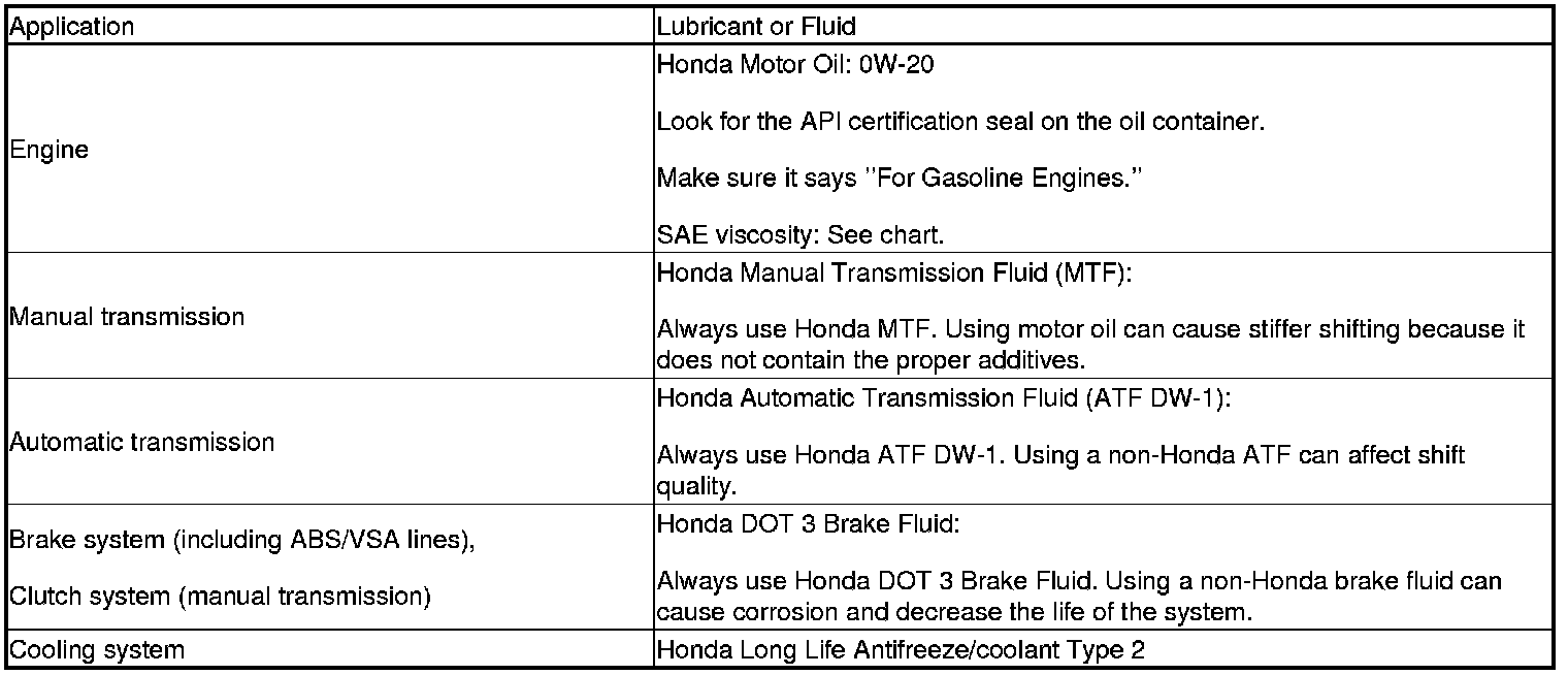 Home >> Honda >> 2011 >> Fit L4-1.5L >> Repair and Diagnosis >> Specifications >> Fluid Type Specifications >> Fluids