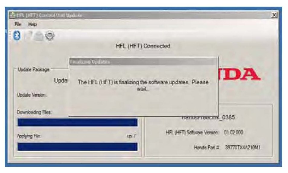 ^ If you see: "01.XX.XXX_(TO)_01.XX.XXX update," the PartNumberFix update is complete. You must now update the HFL control unit software. Go to HFL CONTROL UNIT UPDATE PROCEDURE - CR-V, Vehicles without Navigation.