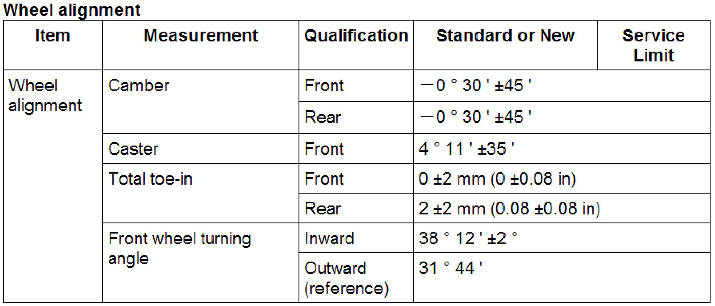 Wheel Alignment Specifications