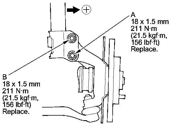 10. Replace the damper pinch bolt (A) with the adjusting bolt (B), and adjust the camber angle.