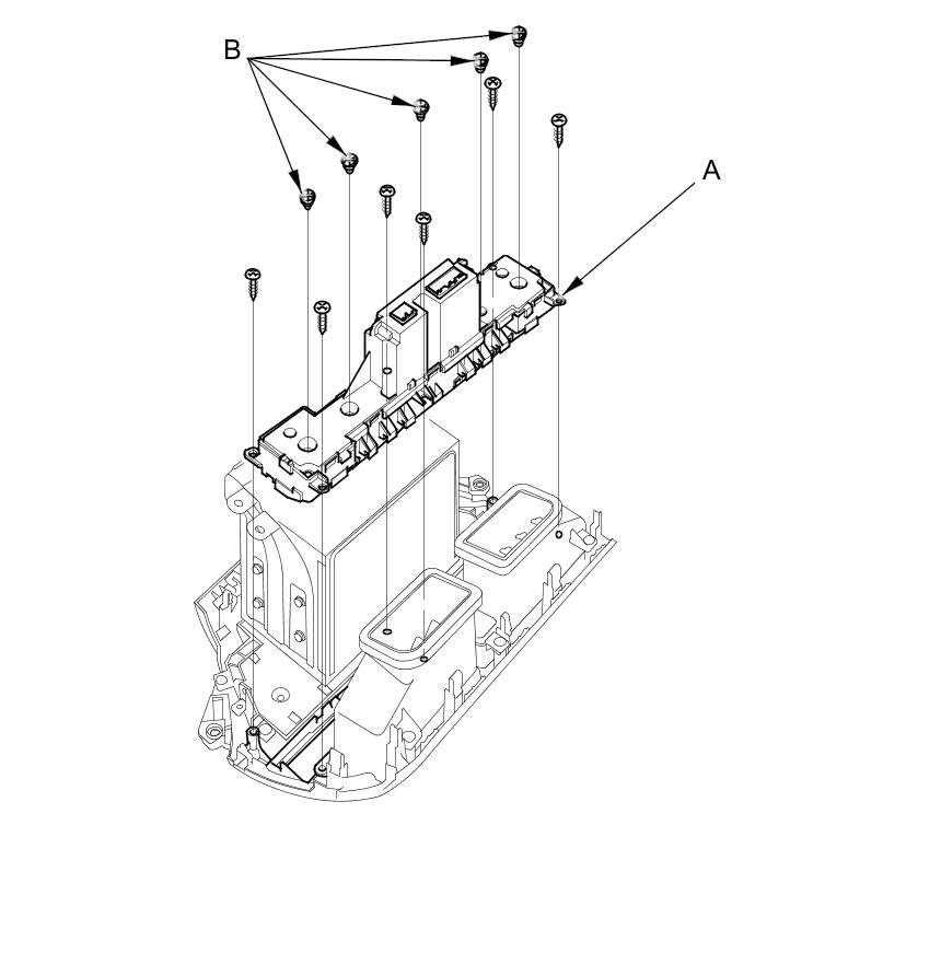 2. Remove the self-tapping screws and the climate control unit (A). If necessary, replace the bulbs (B) with a flat-tip screw driver.