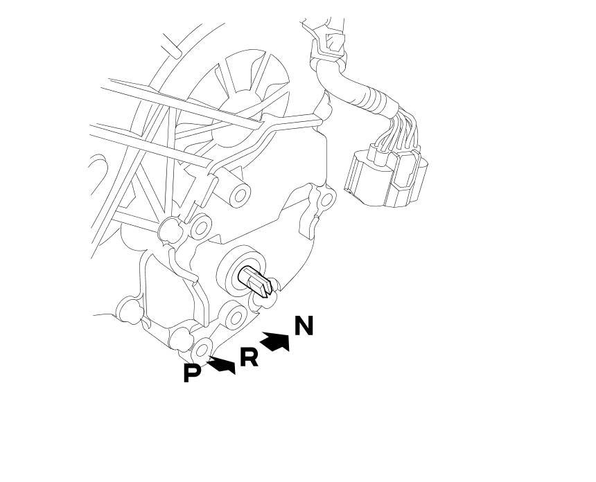 7. Make sure the selector control shaft is in the N position. If necessary, move the shift lever from P to N.