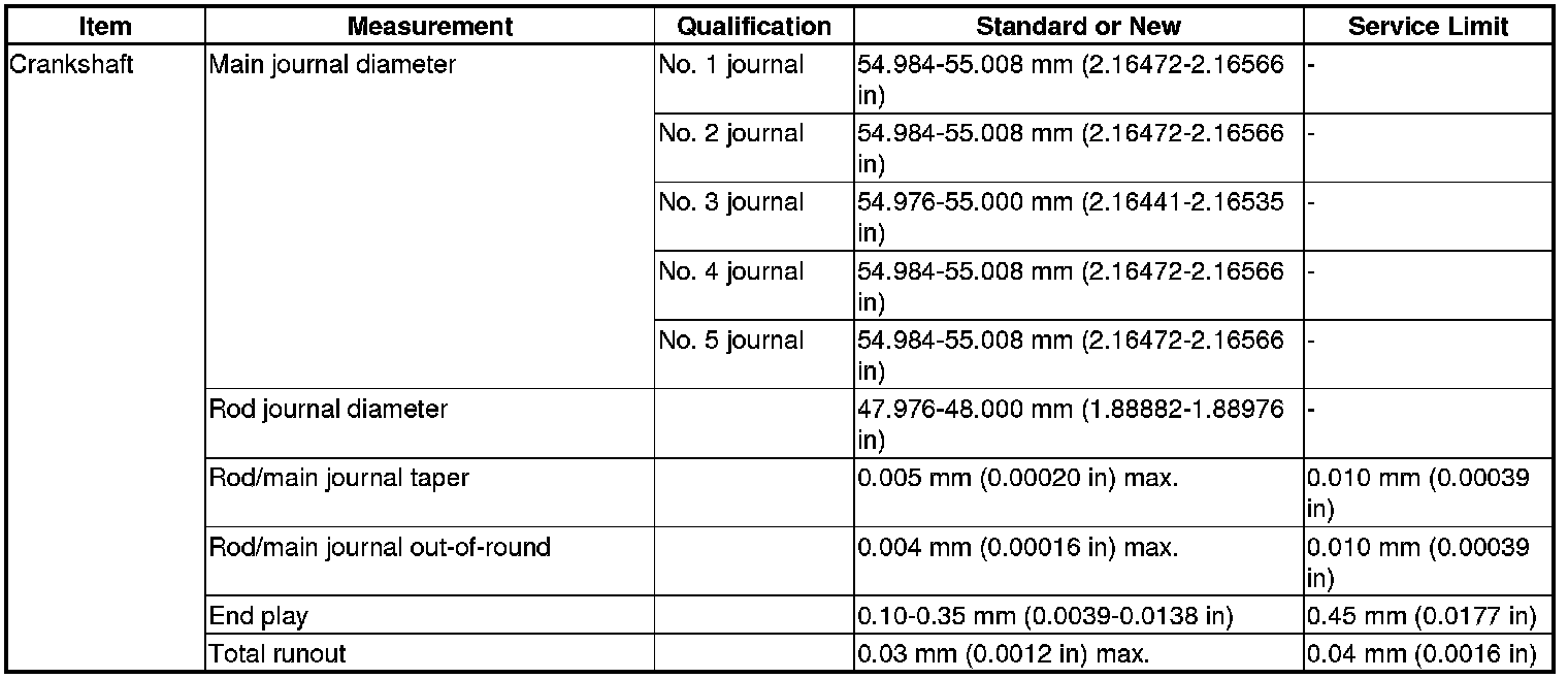 Crankshaft Specification(s)