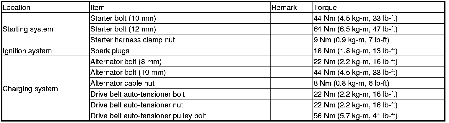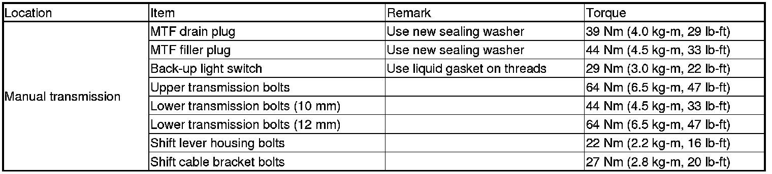 Torque Specifications