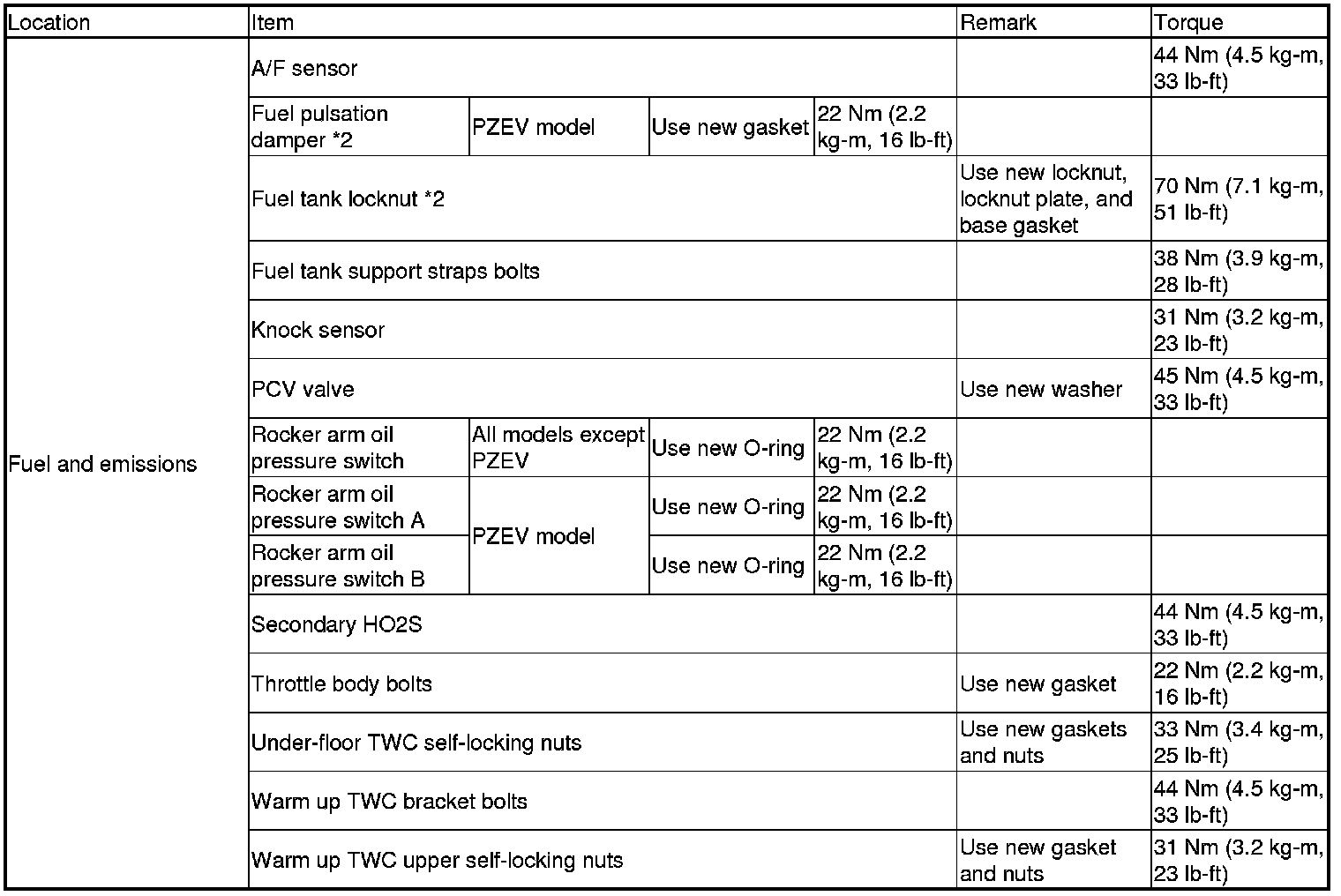 *2: Follow the S/M procedures closely for torque, sequence, and special steps.