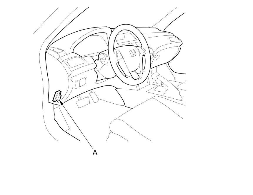 2. Connect the HDS to the data link connector (DLC) (A) located under the driver's side of the dashboard.