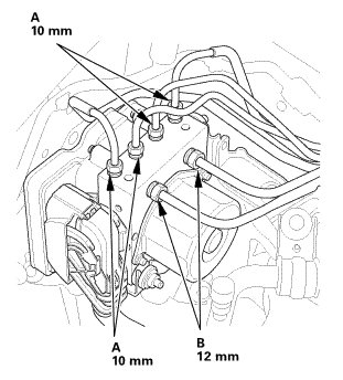 5. Remove the VSA modulator-control unit (A) with the bracket (B) from the body.