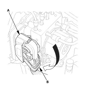 1. Install the VSA modulator-control unit (A) onto the bracket (B).