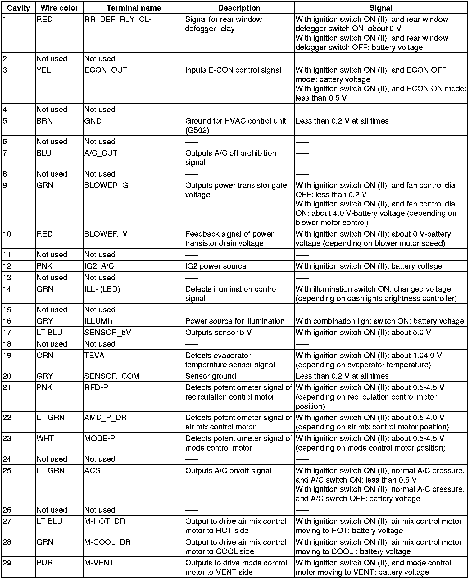HVAC Control Unit Inputs and Outputs