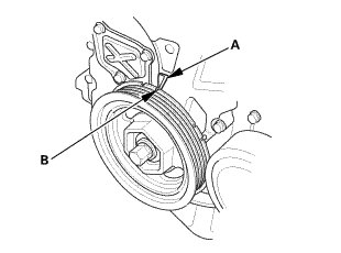 3. Aim the light toward the pointer (A) on the cam chain case. Check the ignition timing under a no load condition (headlights, blower fan, rear window defogger, and air conditioner are turned off).