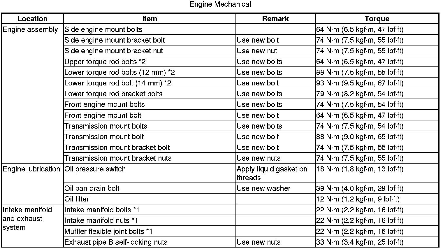 Torque Specifications