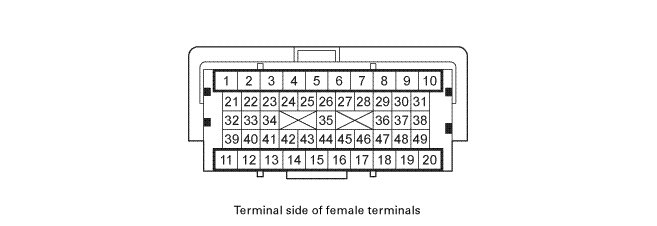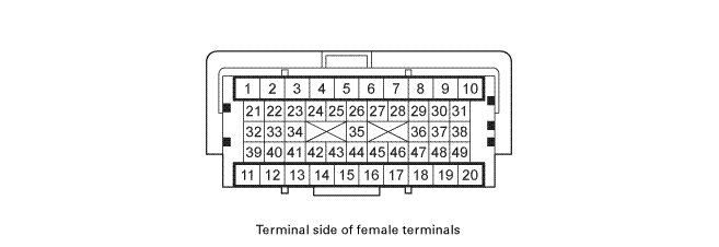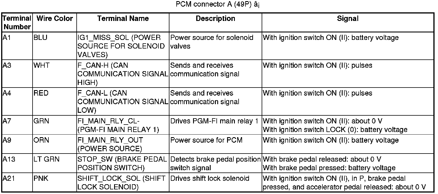 PCM A/T Control System Inputs and Outputs at PCM connector A (49P) (square)