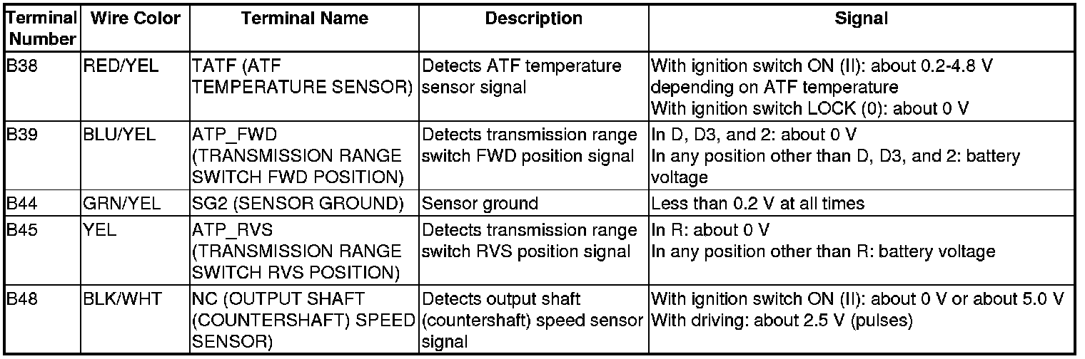 PCM A/T Control System Inputs and Outputs at PCM connector B (49P) (triangle)