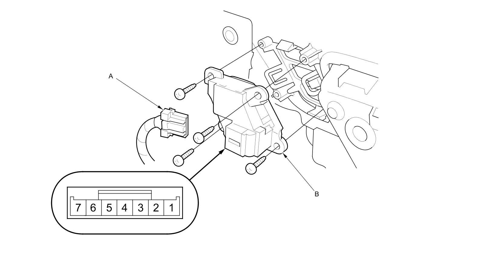 2. Disconnect the 7P connector (A) from the driver's position memory switch (B).