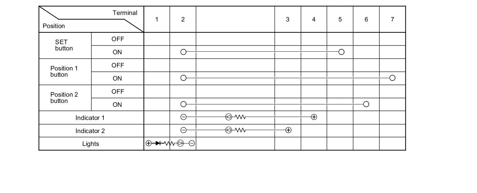 4. Check for continuity between the terminals in each switch position according to the table.