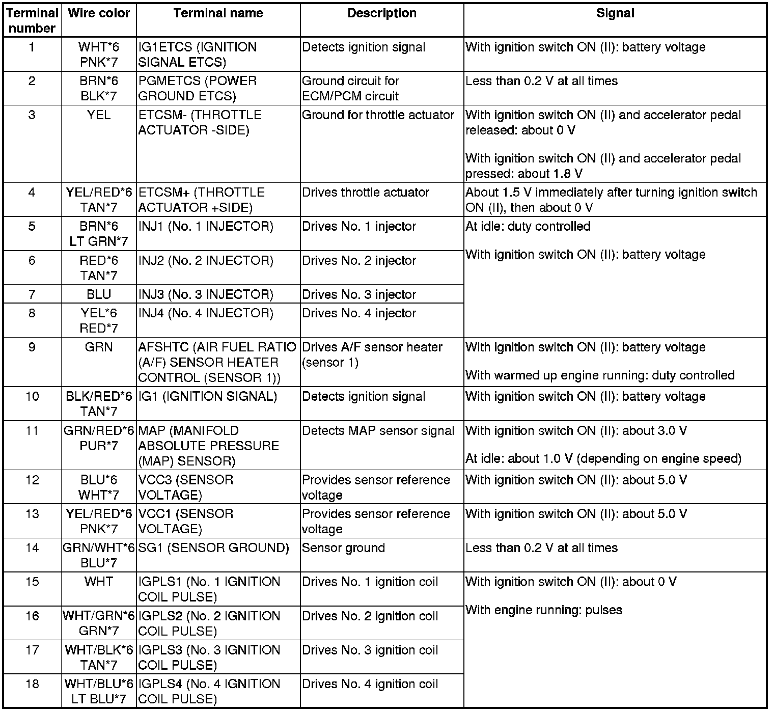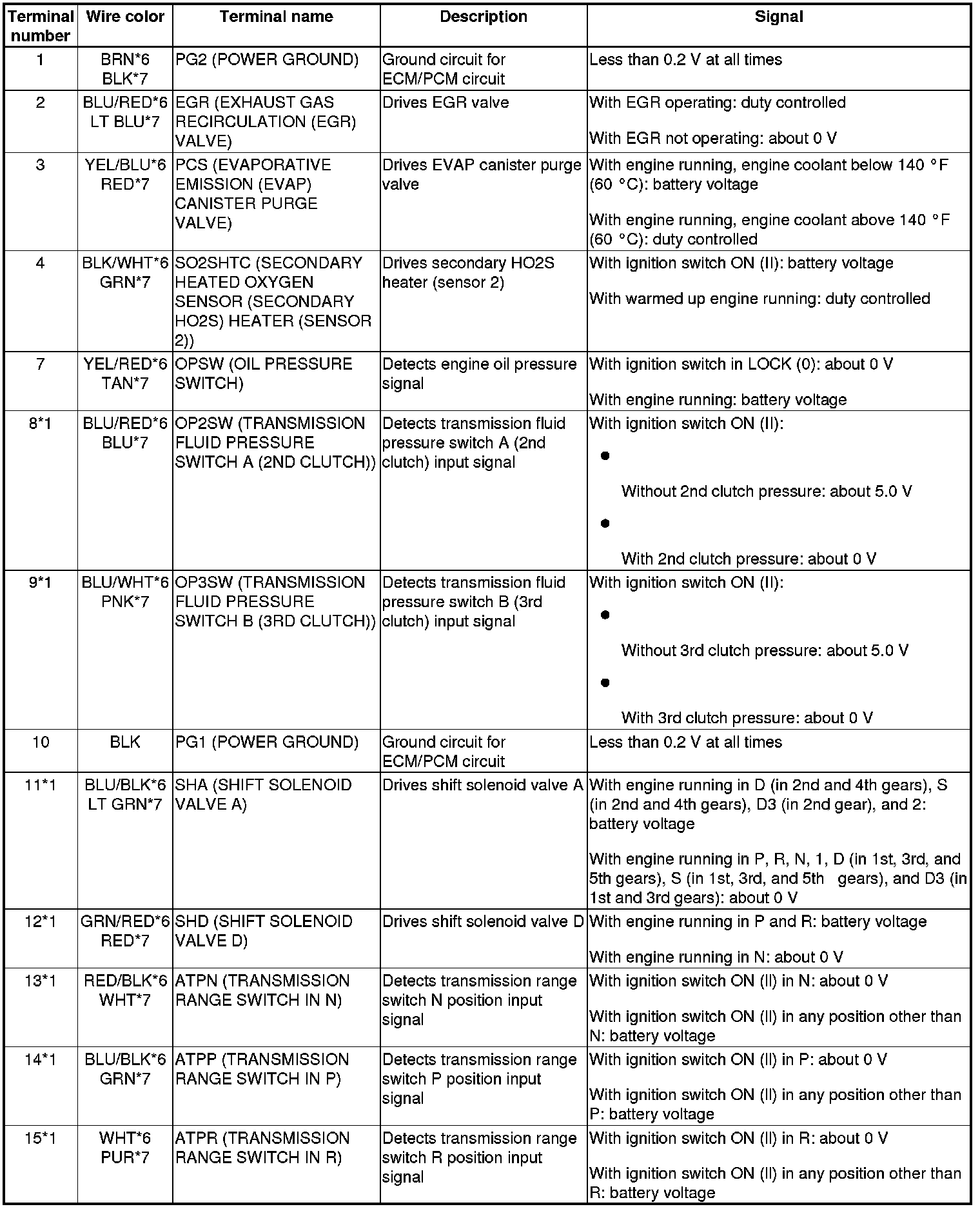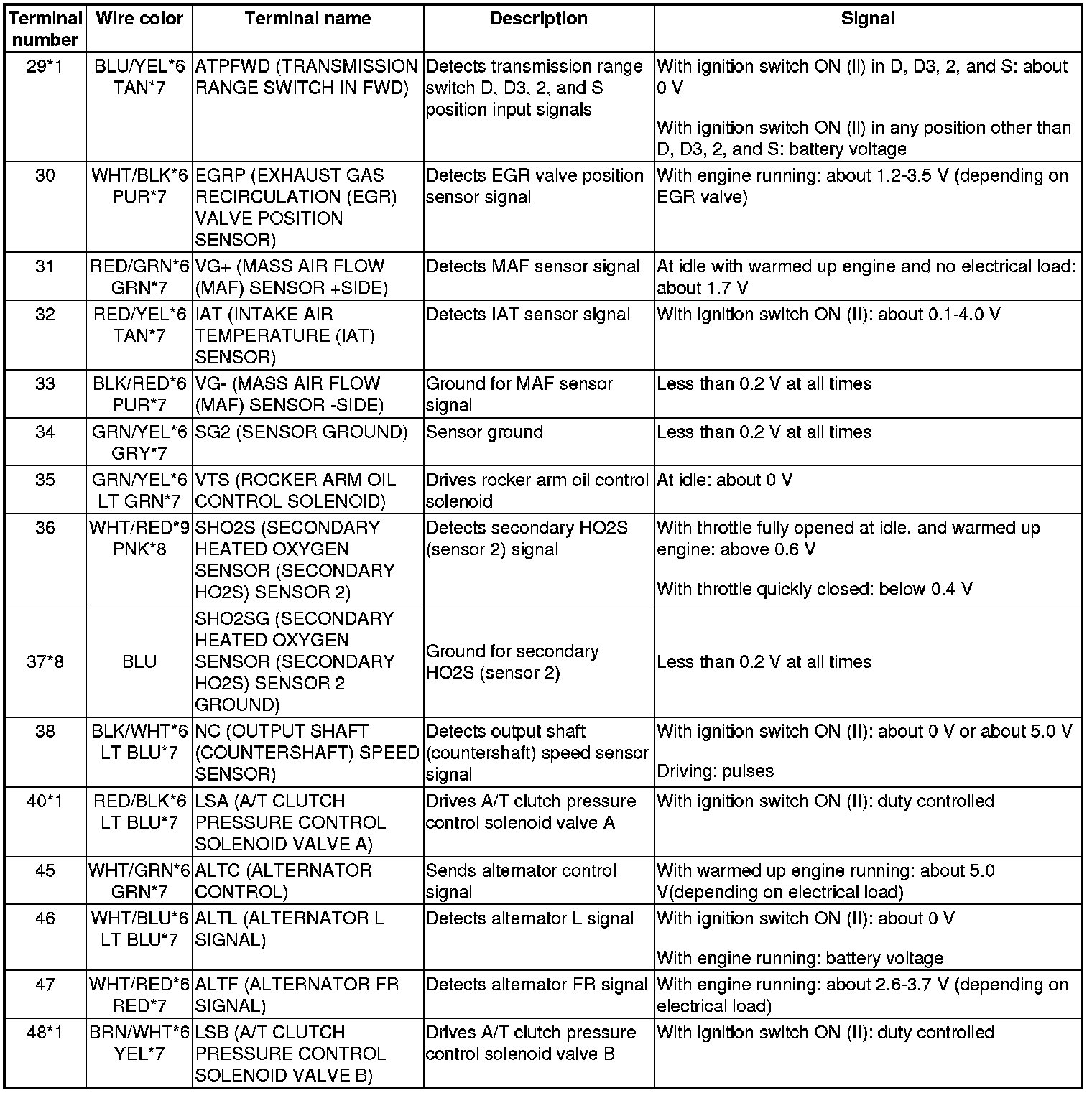 ECM/PCM Inputs and Outputs at ECM/PCM Connector A (square) (49P)