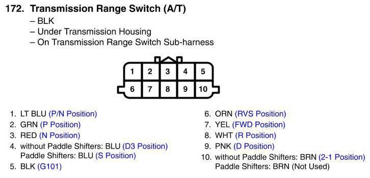 Transmission Position Sensor/Switch: Diagrams