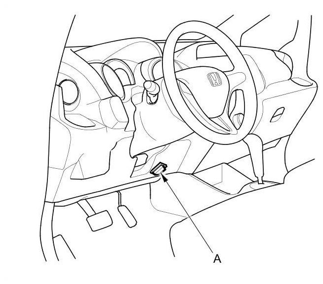 2. Connect the HDS to the data link connector (DLC) (A) located under the driver's side of the dashboard.