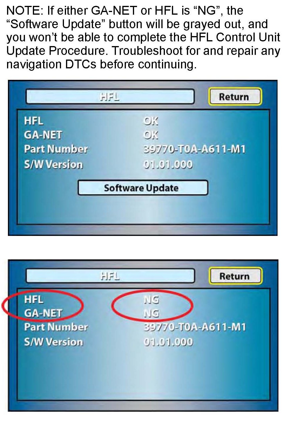 19. The vehicle's navigation screen may not indicate the same software version as shown on the HFL update tool. Do the following to confirm that the software in the HFL control unit has been updated: