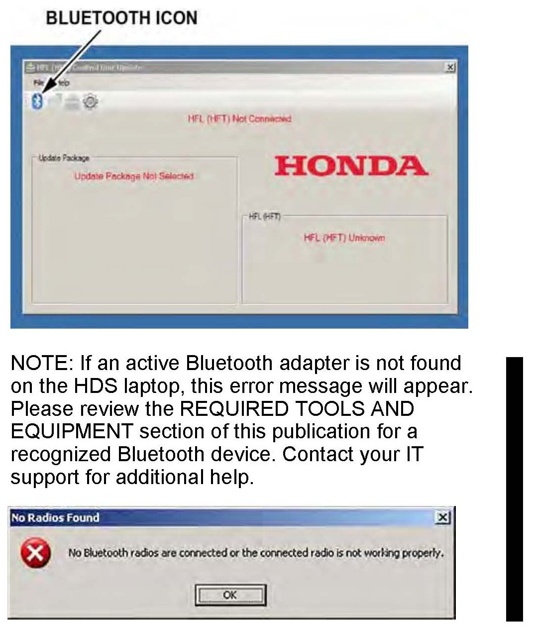 6. On the HDS laptop, double-click the HFL Control Unit Update icon to launch the Honda HFL (HFT) Control Unit Update Tool (HFL update tool).