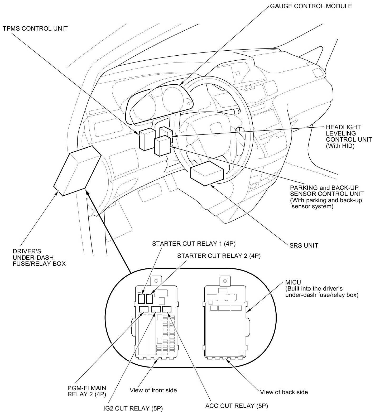 Relay and Control Unit Locations - Dashboard