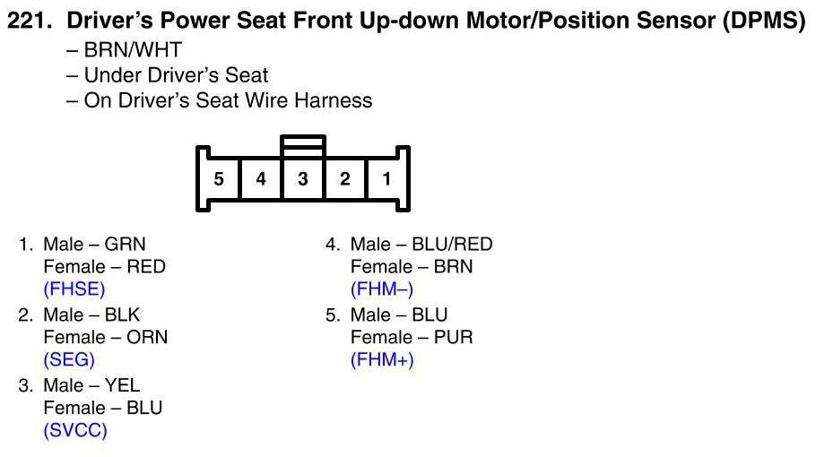 Driver's Power Seat Front Up-Down Motor/Position Sensor Connector View (DPMS)