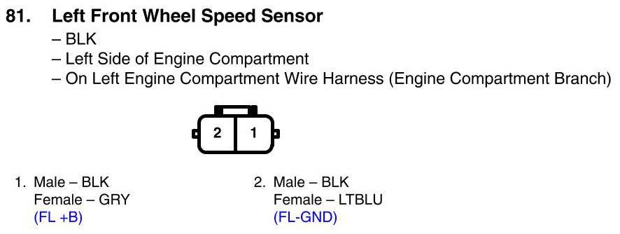 Left Front Wheel Speed Sensor Connector View