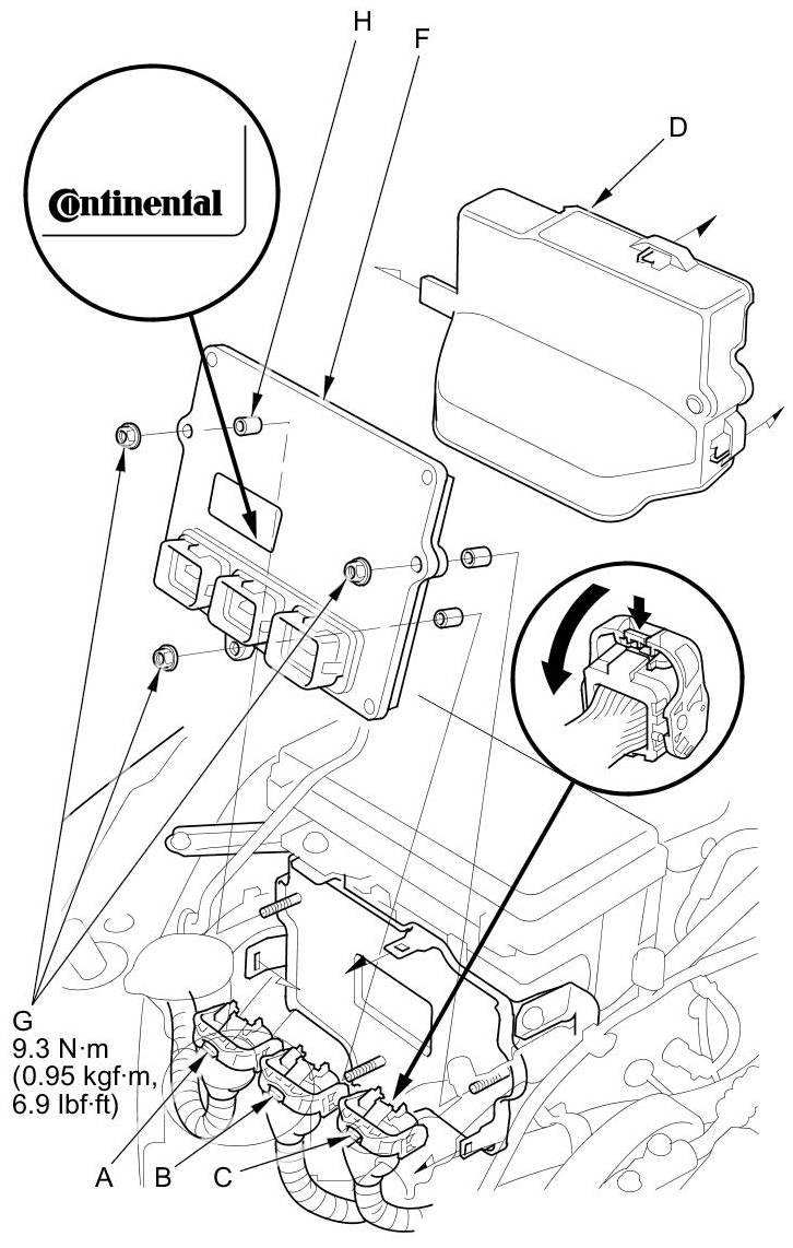 13. Continental PCM: Remove the nuts (G), then remove the PCM (F).
