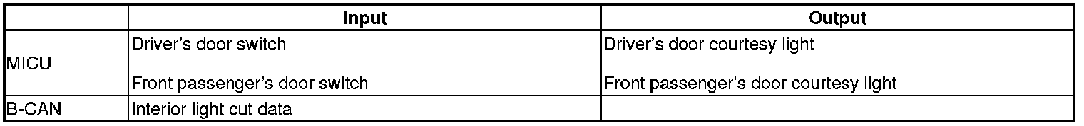 The MICU controls the courtesy lights based on inputs from the driver's and front passenger's door switches and B-CAN data.