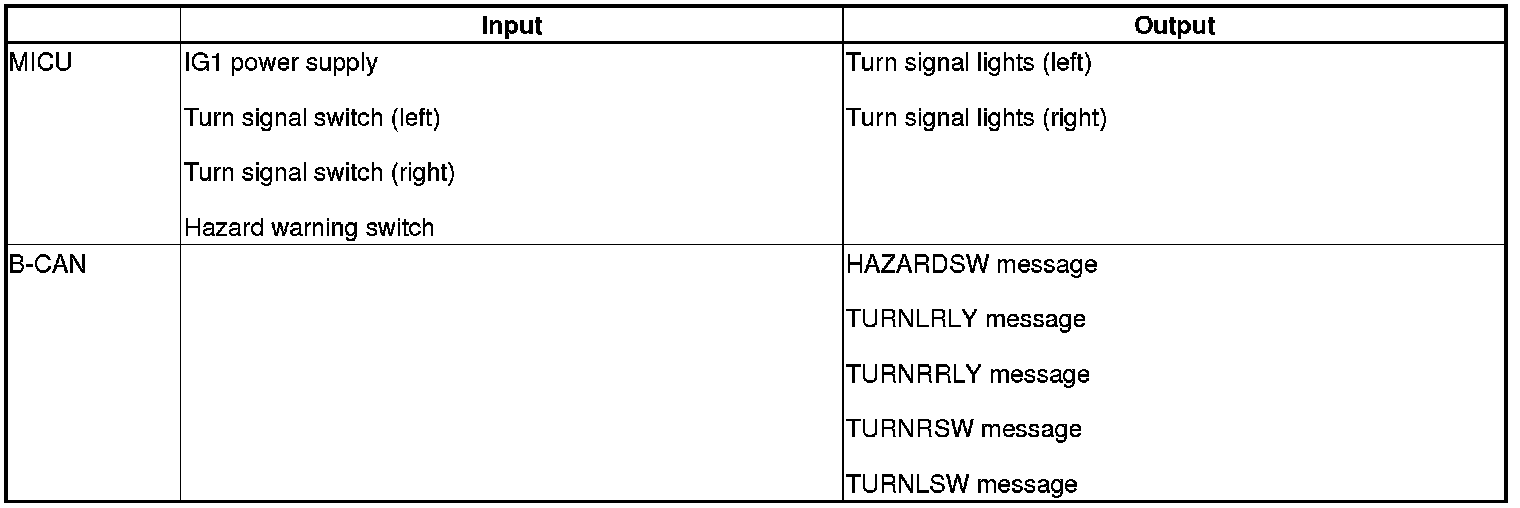 The MICU controls the turn signal/hazard warning lights based on inputs from the turn signal switch and the hazard warning switch.