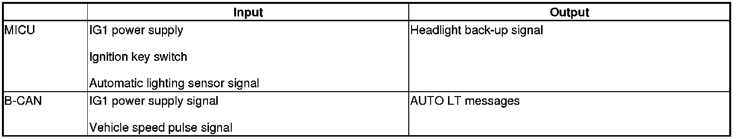 The MICU controls the automatic lighting system based on inputs from each switch and B-CAN data.
