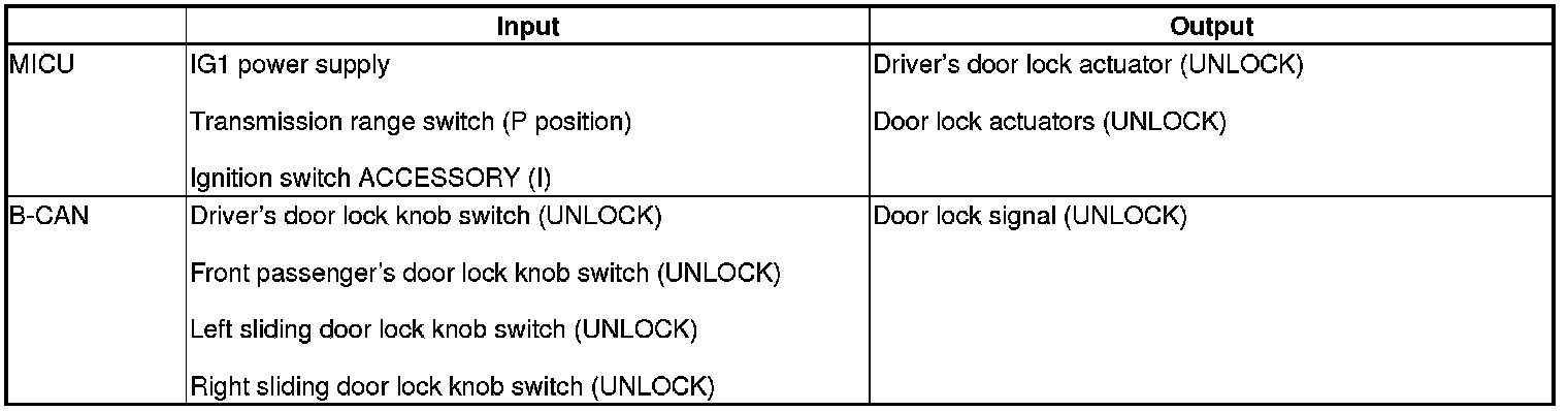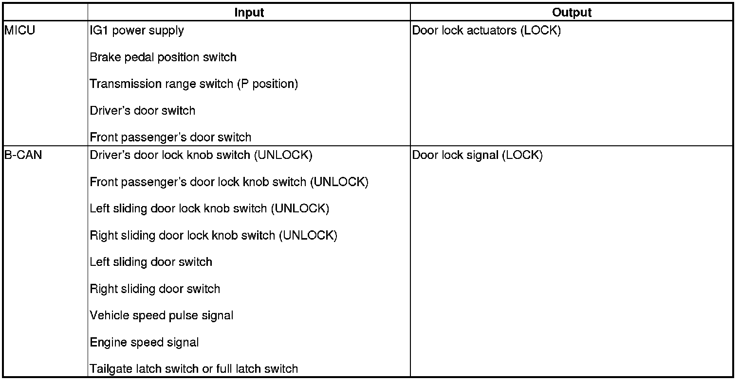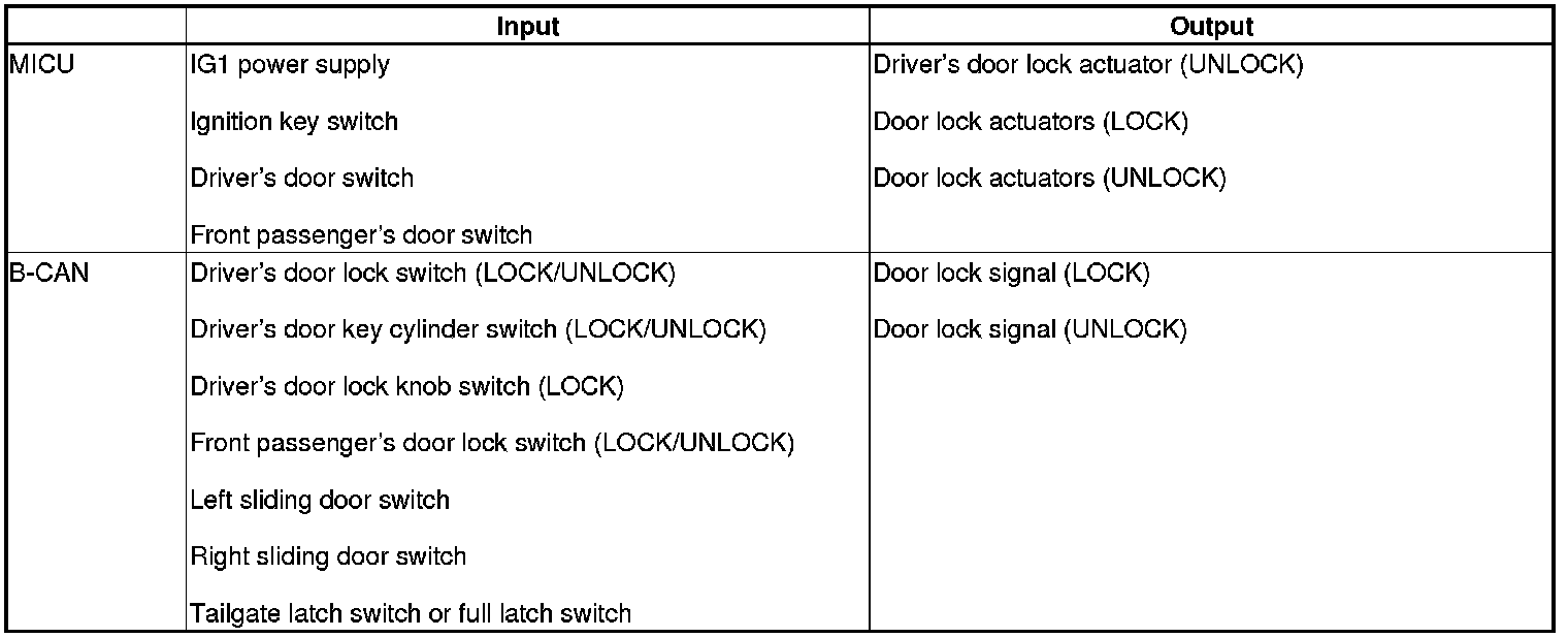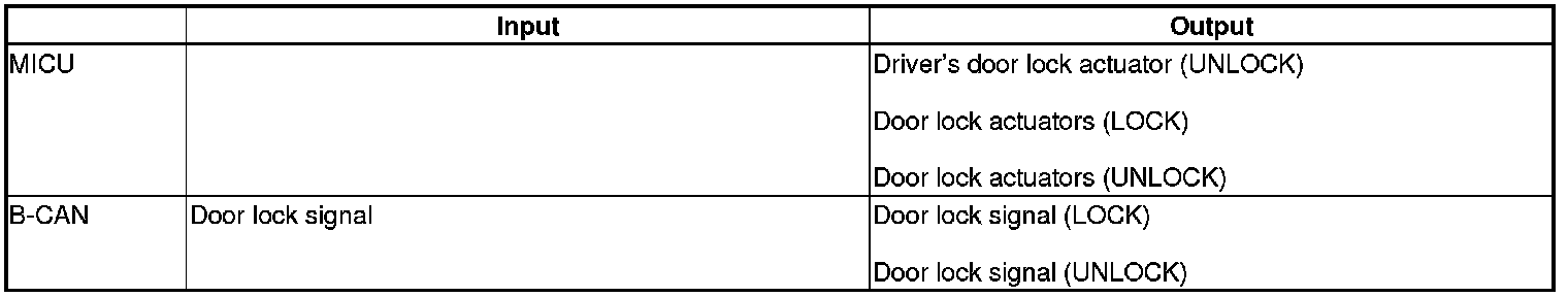 The MICU controls the door lock actuators based on door lock signal sent by B-CAN data.