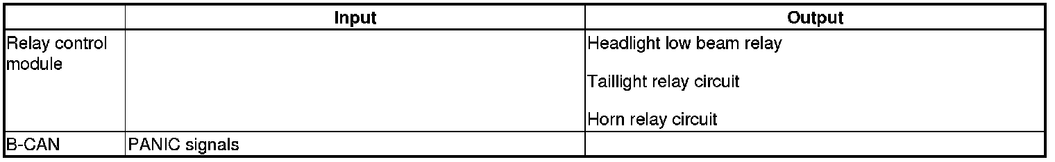 The relay control module controls the keyless PANIC function based on PANIC inputs sent by B-CAN data.