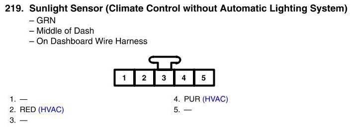 Sunlight Sensor Connector View (Climate Control Without Automatic Lighting System)