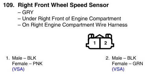 Right Front Wheel Speed Sensor Connector View